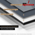 • Hoogwaardige, massieve magnetische prikbord van 3 mm Alu-Dibond, bekleed met magnetische 0,75 mm Ferro-folie + matte UV-bescherming