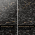 Alles behalve standaard: Het robuuste, meerlagig gecoate papier is weerbestendig en natbestendig. Het oppervlak is zeer glad, terwijl vooral bij schuine aanblik een heel lichte, matte glans de kleuren laat stralen. De zijde-matte afwerking ziet er niet alleen elegant uit, maar beschermt ook tot op zekere hoogte tegen krassen en vette vingers. Kwalitatief een duidelijk verschil met elk standaard posterpapier!