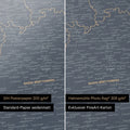 Alles behalve standaard: Het robuuste, meerlagig gecoate papier is weerbestendig en natbestendig. Het oppervlak is zeer glad, terwijl vooral bij schuine aanblik een heel lichte, matte glans de kleuren laat stralen. De zijde-matte afwerking ziet er niet alleen elegant uit, maar beschermt ook tot op zekere hoogte tegen krassen en vette vingers. Kwalitatief een duidelijk verschil met elk standaard posterpapier!