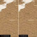 Detailansicht einer schwarz-weißen Weltkarte von Breuers, in der goldene Pins gesteckt sind und bereits besuchte Reiseziele markieren