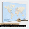 Detailansicht einer Breuers Weltkarte mit oder ohne Personalisierung wie Zitat oder Namen als Logo