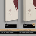 Vergleich der Rahmentiefe unser Weltkarten Pinn-Leinwand, zwischen Slim-Line mit 2 cm Tiefe und Gallery-Line mit 4 cm Tiefe