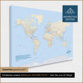 Fähnchen-Pins in Blau zum Pinnen und Markieren von Orten auf einer Weltkarte Pinn-Leinwand