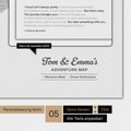 Maak van de wereldkaart een uniek exemplaar – met een personalisatie. Kies tussen het Bourdain-citaat of geef ons je gewenste citaat door, dat we linksonder op de wereldkaart drukken. Voor maximale persoonlijkheid kun je rechtsonder tot vier motieven kiezen om je namen op de kaart te zetten. Voor bedrijven bieden we bovendien de mogelijkheid om tegen een kleine meerprijs hun logo te laten drukken.