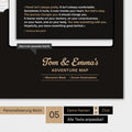 Maak van de wereldkaart een uniek exemplaar – met een personalisatie. Kies tussen het Bourdain-citaat of geef ons je gewenste citaat door, dat we linksonder op de wereldkaart drukken. Voor maximale persoonlijkheid kun je rechtsonder tot vier motieven kiezen om je namen op de kaart te zetten. Voor bedrijven bieden we bovendien de mogelijkheid om tegen een kleine meerprijs hun logo te laten drukken.