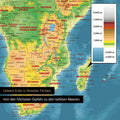 • High level of detail: finely crafted elevation and depth structures (hypsometry) in bright colors, with all country names + capitals + up to 2,600 places*