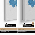 Vergleich der Rahmentiefe unser Weltkarten Pinn-Leinwand, zwischen Slim-Line mit 2 cm Tiefe und Gallery-Line mit 4 cm Tiefe