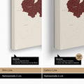 With the Push Pin Map PLUS, we additionally insert a PALBOARD® rigid foam board directly behind the canvas into the stretcher frame. The decisive advantage: PALBOARD® is better than cork! The material is significantly more shatterproof, feather-light – and holds pins taut perfectly. Pinning is really fun this way!