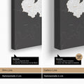 Slim-Line (2 cm) offers a flat look with subtle shadows. Gallery-Line (4 cm), on the other hand, provides a high-quality gallery look with strong shadows. In addition, the 4 cm frame gives extra stability, which is particularly recommended for larger push pin canvases from 160 cm.