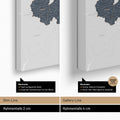 Vergleich der Rahmentiefe unser Weltkarten Pinn-Leinwand, zwischen Slim-Line mit 2 cm Tiefe und Gallery-Line mit 4 cm Tiefe