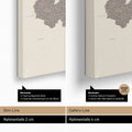Vergleich der Rahmentiefe unser Weltkarten Pinn-Leinwand, zwischen Slim-Line mit 2 cm Tiefe und Gallery-Line mit 4 cm Tiefe