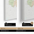 Vergleich der Rahmentiefe unser Weltkarten Pinn-Leinwand, zwischen Slim-Line mit 2 cm Tiefe und Gallery-Line mit 4 cm Tiefe