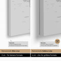 Vergleich der Rahmentiefe unser Weltkarten Pinn-Leinwand, zwischen Slim-Line mit 2 cm Tiefe und Gallery-Line mit 4 cm Tiefe