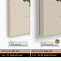 Slim-Line (2 cm) offers a flat look with subtle shadows. Gallery-Line (4 cm), on the other hand, provides a high-quality gallery look with strong shadows. In addition, the 4 cm frame gives extra stability, which is particularly recommended for larger push pin canvases from 160 cm.