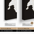 Vergleich der Rahmentiefe unser Weltkarten Pinn-Leinwand, zwischen Slim-Line mit 2 cm Tiefe und Gallery-Line mit 4 cm Tiefe