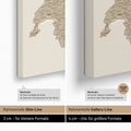 Vergleich der Rahmentiefe unser Weltkarten Pinn-Leinwand, zwischen Slim-Line mit 2 cm Tiefe und Gallery-Line mit 4 cm Tiefe