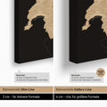 Vergleich der Rahmentiefe unser Weltkarten Pinn-Leinwand, zwischen Slim-Line mit 2 cm Tiefe und Gallery-Line mit 4 cm Tiefe