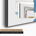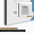 Thanks to the aluminum frame mounted on the back, the magnetic board protrudes approx. 15 mm from the wall. This gives the magnetic board an exclusive, floating gallery look.