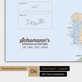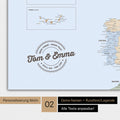 Make the Europe map unique – with a personalization. Choose between four designs to place your names on the map and, depending on the design, to include a legend. We also offer companies the option to print their logo for a small additional fee.
