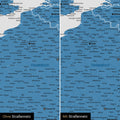Vergleich der Rahmentiefe unser Weltkarten Pinn-Leinwand, zwischen Slim-Line mit 2 cm Tiefe und Gallery-Line mit 4 cm Tiefe