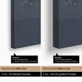Slim-Line (2 cm) offers a flat look with subtle shadows. Gallery-Line (4 cm), on the other hand, provides a high-quality gallery look with strong shadows. In addition, the 4 cm frame gives extra stability, which is particularly recommended for larger push pin canvases from 160 cm.