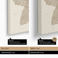 Vergleich der Rahmentiefe unser Weltkarten Pinn-Leinwand, zwischen Slim-Line mit 2 cm Tiefe und Gallery-Line mit 4 cm Tiefe
