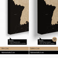 Vergleich der Rahmentiefe unser Weltkarten Pinn-Leinwand, zwischen Slim-Line mit 2 cm Tiefe und Gallery-Line mit 4 cm Tiefe