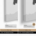 Slim-Line (2 cm) offers a flat look with subtle shadows. Gallery-Line (4 cm), on the other hand, provides a high-quality gallery look with strong shadows. In addition, the 4 cm frame gives extra stability, which is particularly recommended for larger push pin canvases from 160 cm.