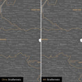 With the Push Pin Map PLUS, we additionally insert a PALBOARD® rigid foam board directly behind the canvas into the stretcher frame. The decisive advantage: PALBOARD® is better than cork! The material is significantly more shatterproof, feather-light – and holds pins taut perfectly. Pinning is really fun this way!