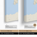 Slim-Line (2 cm) offers a flat look with subtle shadows. Gallery-Line (4 cm), on the other hand, provides a high-quality gallery look with strong shadows. In addition, the 4 cm frame gives extra stability, which is particularly recommended for larger push pin canvases from 160 cm.