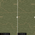 In order to keep the design as minimalist as possible, we do not include too many details in the land areas. If this is not enough for you, you can optionally add a road network: This visual addition visibly loosens up the background, provides better orientation on the map and increases the level of detail to the maximum - here using our Europe map as an example.