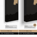 Vergleich der Rahmentiefe unser Weltkarten Pinn-Leinwand, zwischen Slim-Line mit 2 cm Tiefe und Gallery-Line mit 4 cm Tiefe