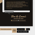 Make the world map unique – with a personalization. Choose between the Bourdain quote or give us the quote of your choice, which we will print on the bottom left of the world map. For maximum personality, you can choose from up to four designs at the bottom right to put your name on the map. We also offer companies the option of printing their logo for a small surcharge.