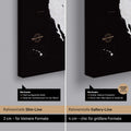 Slim-Line (2 cm) offers a flat look with subtle shadows. Gallery-Line (4 cm), on the other hand, provides a high-quality gallery look with strong shadows. In addition, the 4 cm frame gives extra stability, which is particularly recommended for larger push pin canvases from 160 cm.