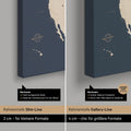 Vergleich der Rahmentiefe unser Weltkarten Pinn-Leinwand, zwischen Slim-Line mit 2 cm Tiefe und Gallery-Line mit 4 cm Tiefe