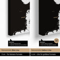 Slim-Line (2 cm) offers a flat look with subtle shadows. Gallery-Line (4 cm), on the other hand, provides a high-quality gallery look with strong shadows. In addition, the 4 cm frame gives extra stability, which is particularly recommended for larger push pin canvases from 160 cm.