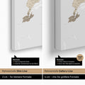 Vergleich der Rahmentiefe unser Weltkarten Pinn-Leinwand, zwischen Slim-Line mit 2 cm Tiefe und Gallery-Line mit 4 cm Tiefe
