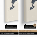 Vergleich der Rahmentiefe unser Weltkarten Pinn-Leinwand, zwischen Slim-Line mit 2 cm Tiefe und Gallery-Line mit 4 cm Tiefe