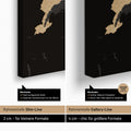 Vergleich der Rahmentiefe unser Weltkarten Pinn-Leinwand, zwischen Slim-Line mit 2 cm Tiefe und Gallery-Line mit 4 cm Tiefe