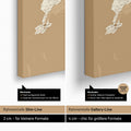Vergleich der Rahmentiefe unser Weltkarten Pinn-Leinwand, zwischen Slim-Line mit 2 cm Tiefe und Gallery-Line mit 4 cm Tiefe
