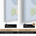 Vergleich der Rahmentiefe unser Weltkarten Pinn-Leinwand, zwischen Slim-Line mit 2 cm Tiefe und Gallery-Line mit 4 cm Tiefe