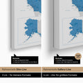 Fähnchen-Pins in Blau zum Pinnen und Markieren von Orten auf einer Weltkarte Pinn-Leinwand