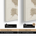 Vergleich der Rahmentiefe unser Weltkarten Pinn-Leinwand, zwischen Slim-Line mit 2 cm Tiefe und Gallery-Line mit 4 cm Tiefe