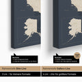 Vergleich der Rahmentiefe unser Weltkarten Pinn-Leinwand, zwischen Slim-Line mit 2 cm Tiefe und Gallery-Line mit 4 cm Tiefe