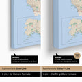 Vergleich der Rahmentiefe unser Weltkarten Pinn-Leinwand, zwischen Slim-Line mit 2 cm Tiefe und Gallery-Line mit 4 cm Tiefe