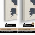 Vergleich der Rahmentiefe unser Weltkarten Pinn-Leinwand, zwischen Slim-Line mit 2 cm Tiefe und Gallery-Line mit 4 cm Tiefe
