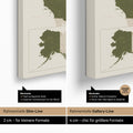 Vergleich der Rahmentiefe unser Weltkarten Pinn-Leinwand, zwischen Slim-Line mit 2 cm Tiefe und Gallery-Line mit 4 cm Tiefe