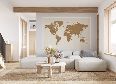 Show your travel plans in a big way – with our popular TRAVEL® world maps as high-quality non-woven photo wallpaper. It is mounted by using standard paste, so the world map will be hanging on your wall in no time at all. The modern, minimalist design and razor-sharp print will leave a lasting impression!